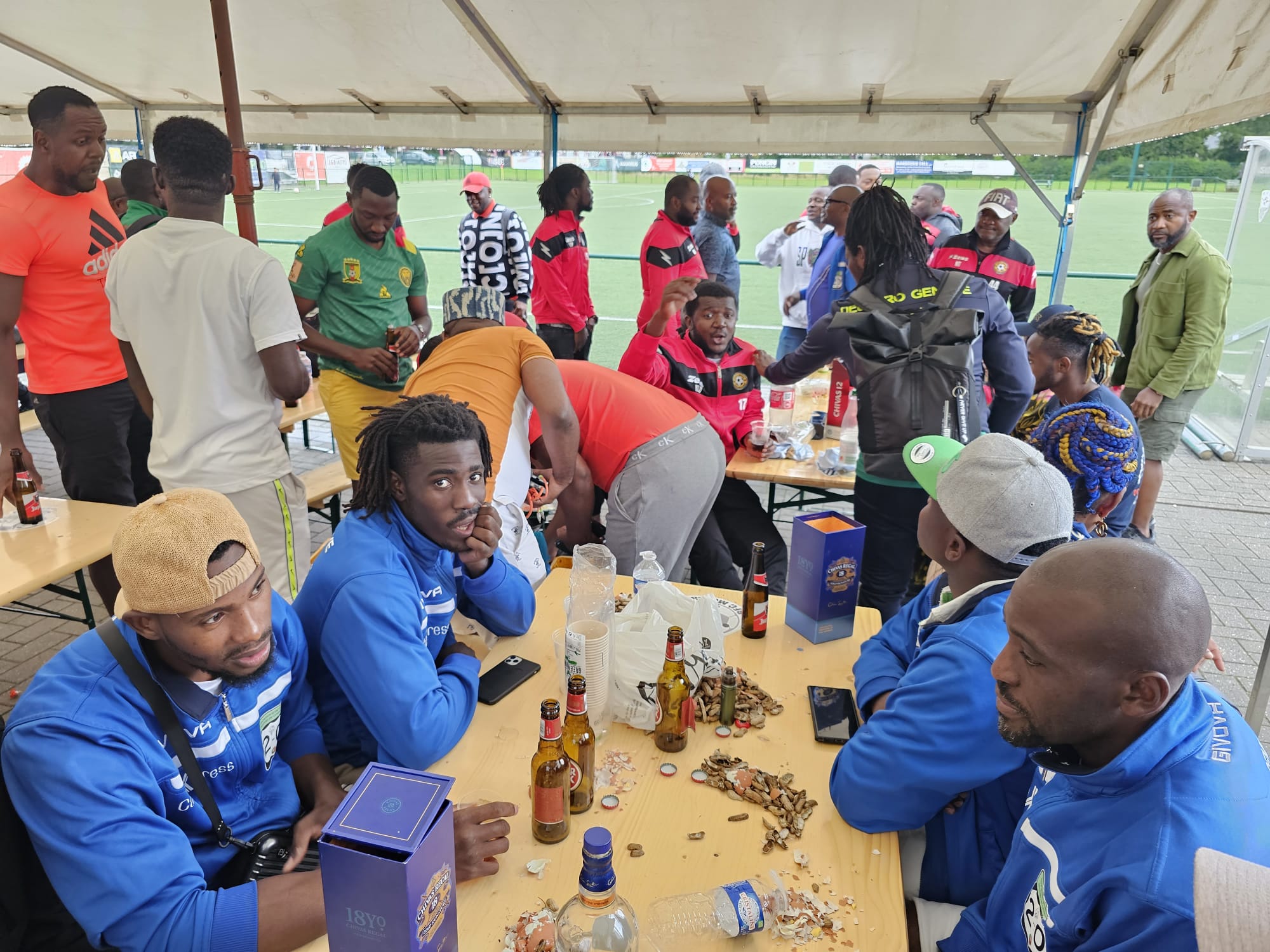 Côté football/match : bien qu'ayant perdu la rencontre par le plus minimum des scores 4 – 3, nos gars aussi braves et valeureux soient-ils...dans des conditions météorologiques drastiques (pluie battante quasiment tout le match) ...ont mouillé le maillot et aussi fait honneur à notre 2 -0...si fiers de l'être. avec un effectif de *15 joueurs de champ (y compris Mbu, modeste, Stéphane nana, Prési Oga) qui ont aussi participé, vous comprendriez pourquoi je leur tire chapeau et suis extrêmement satisfait & fier d'eux...fier de ce groupe...qui nous procure tant d'émotions.